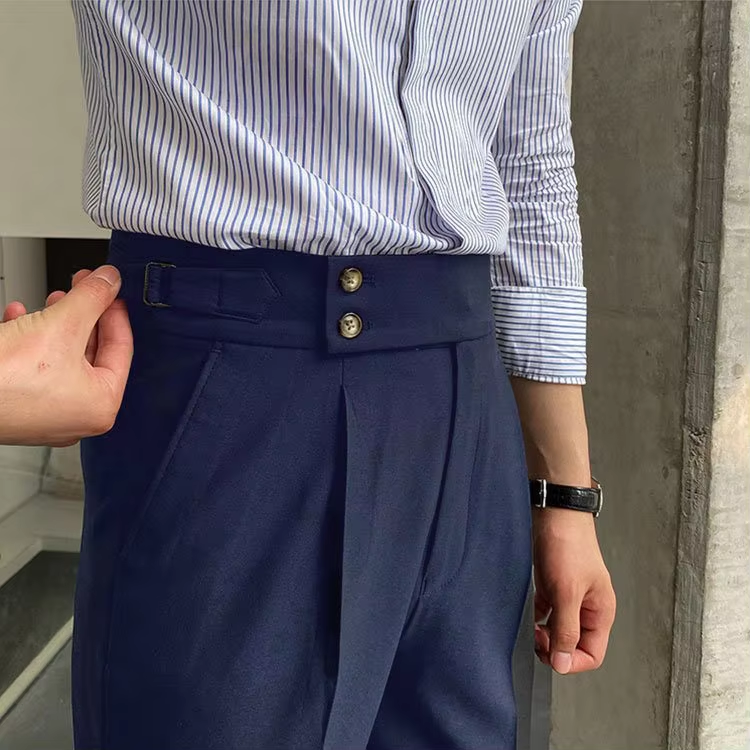 Elevate your wardrobe with the Navy Blue Signature Double Button Gurkha Pants by American Vega, a modern essential that blends refined tailoring with timeless sophistication. Crafted from premium Italian TR fabric with a light gloss finish, these trousers combine durability, breathability, and enduring comfort.