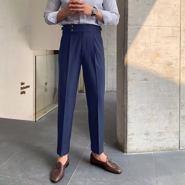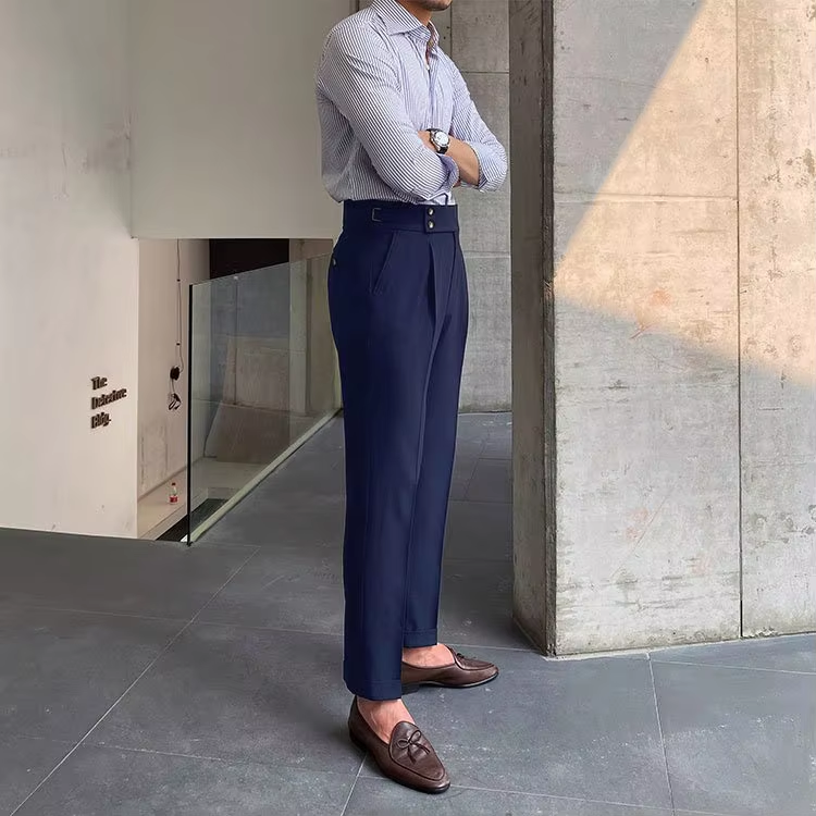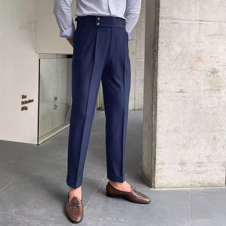 Designed with an elevated high-rise double-buckle waistband, these pants eliminate the need for belts, ensuring a clean, structured, and adjustable fit. Reinforced with triple-chain stitching, a branded waistband interior, reinforced pocket entries, and premium YKK zippers, they are built for both elegance and longevity.