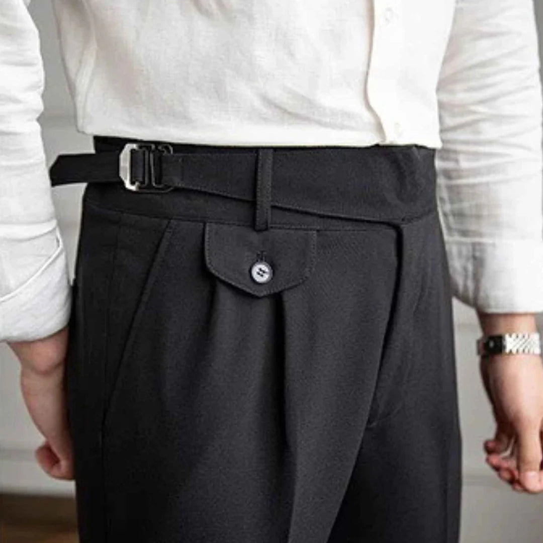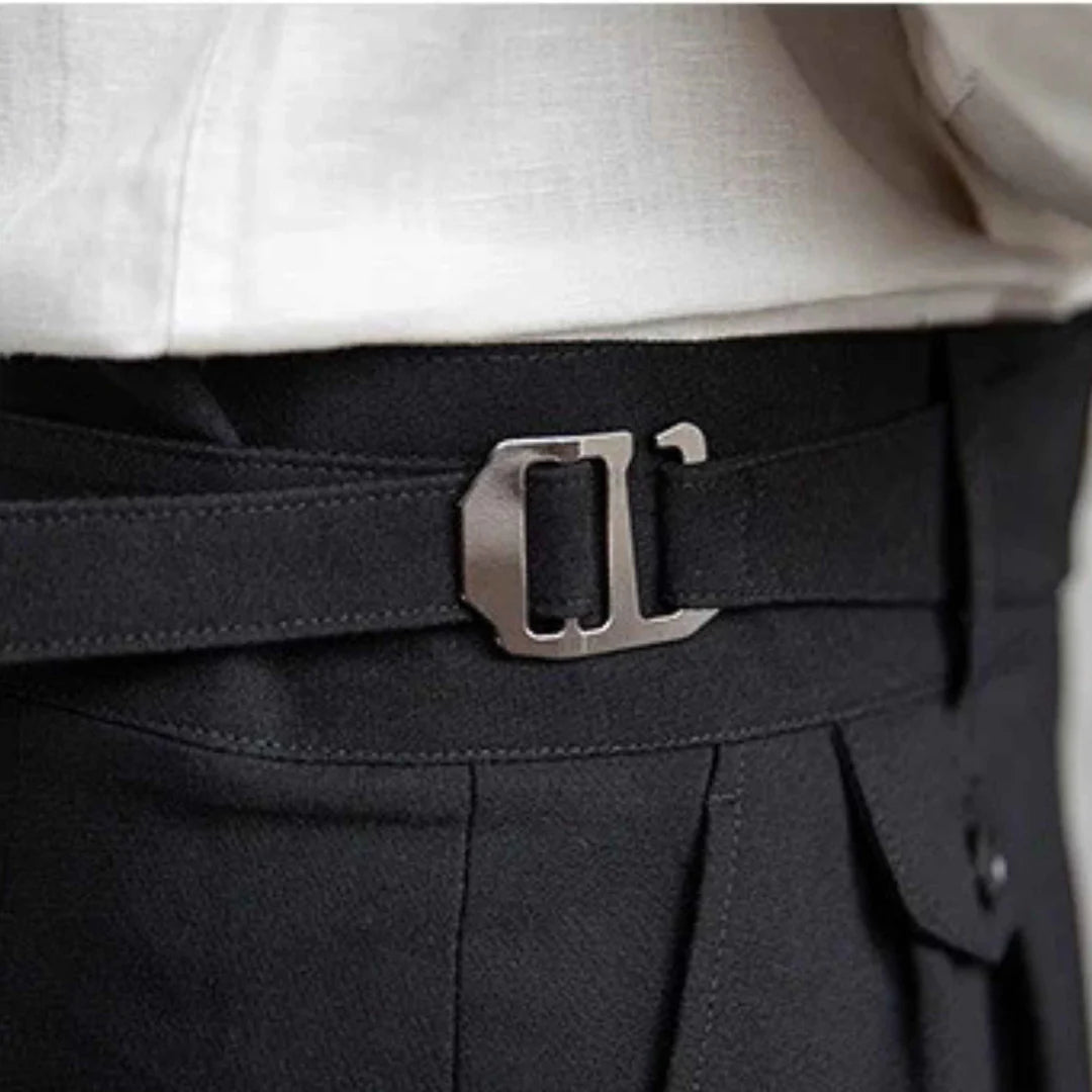 Redefine classic menswear with theย Onyx Black G-Hook Signature Gurkha Pant by American Vega, a tailored icon designed for those who value distinction, versatility, and ease. Showcasingย American Vegaโs signature G-Hook side adjuster closure, these pants offer a belt-free, customized fit and a striking, modern silhouette unmatched in functional luxury.